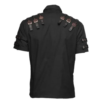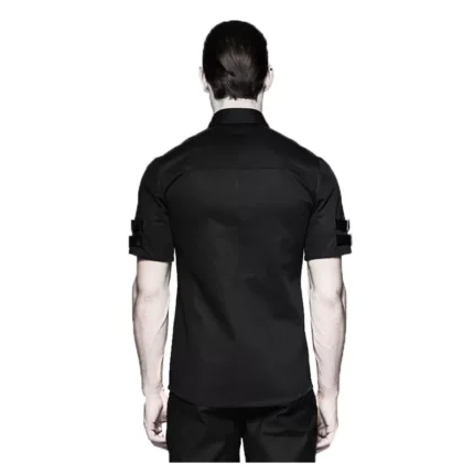 Men Short Sleeve Gothic Shirt Black Axl Shirt With D-rings Style