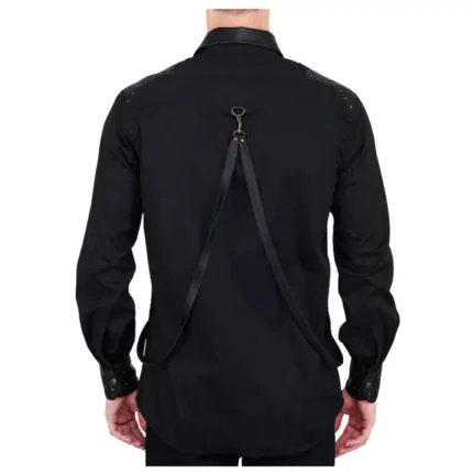 Men Gothic Vintage Shirt Goth Steampunk Shirt Black Goth Cotton Shirt